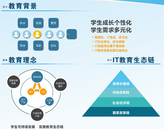 為改善這種現(xiàn)狀,非常需要學校與企業(yè)共同教育的模式,在聯(lián)合教學上,厚溥做得非常好。與接觸到的其他培訓機構(gòu)相比,厚溥團隊對于教育的領悟更深入,本質(zhì)領會更到位。厚溥資源豐富,但更重要的是內(nèi)容、方法、管理三個方面,學??梢酝ㄟ^購買優(yōu)質(zhì)服務來提升自己辦學水平。