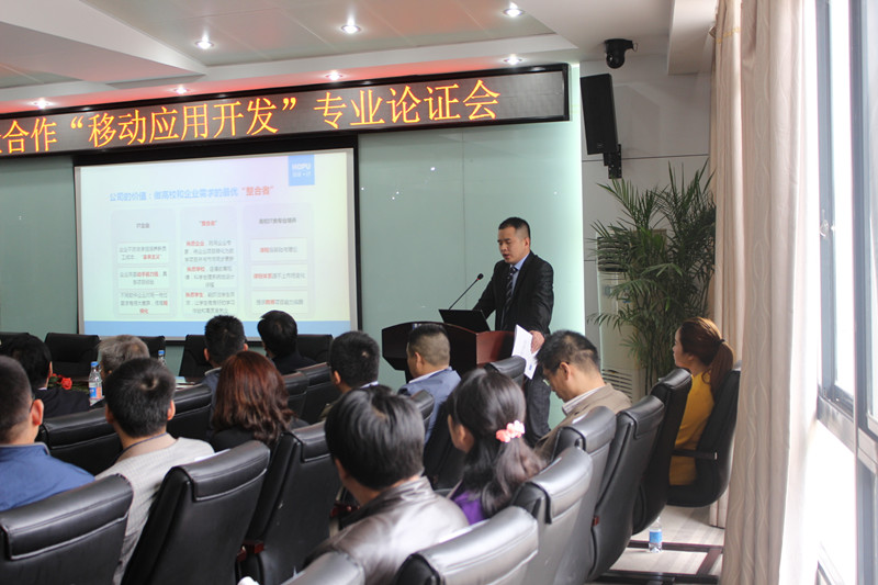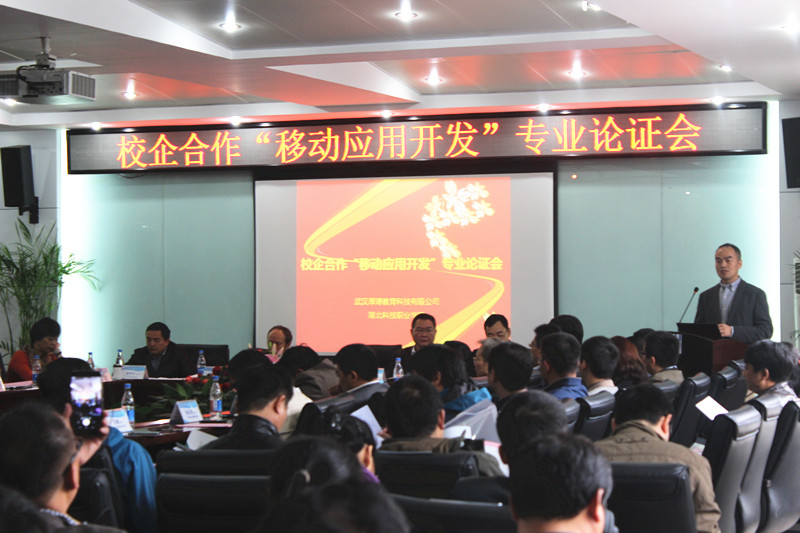 為滿足行業(yè)、企業(yè)對(duì)移動(dòng)應(yīng)用開(kāi)發(fā)技術(shù)人才的需求,進(jìn)一步推動(dòng)產(chǎn)教融合、校企合作,提高人才培養(yǎng)質(zhì)量,搭建行業(yè)、企業(yè)、高校的溝通平臺(tái),武漢厚溥教育科技有限公司與湖北科技職業(yè)學(xué)院于2015年11月07日在光谷軟件園共同舉辦校企合作“移動(dòng)應(yīng)用開(kāi)發(fā)”專(zhuān)業(yè)論證會(huì)。