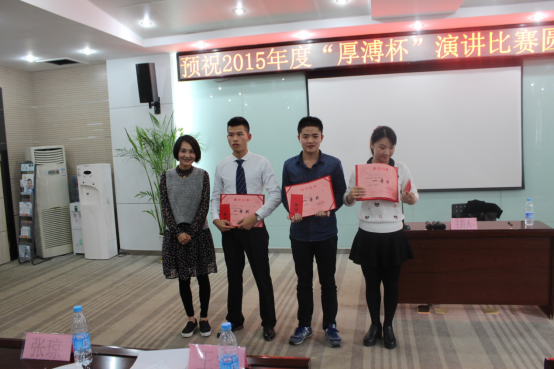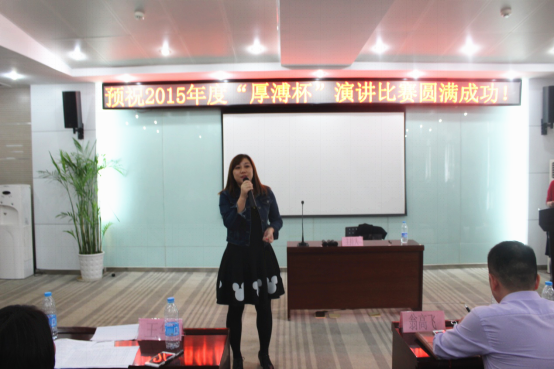 2015“厚溥杯”演講比賽由武漢厚溥教育科技有限公司技術(shù)中心主辦,技術(shù)中心于2015年10月初開始組織策劃,參賽學(xué)校及對象由荊州職業(yè)技術(shù)學(xué)院、湖北國土資源職業(yè)學(xué)院、湖北科技職業(yè)學(xué)院、武漢工程職業(yè)技術(shù)學(xué)院、黃岡職業(yè)技術(shù)學(xué)院、武漢外語外事職業(yè)學(xué)院、湖北三峽職業(yè)技術(shù)學(xué)院、武漢軟件工程職業(yè)學(xué)院、河南水利與環(huán)境職業(yè)學(xué)院、河南信息統(tǒng)計學(xué)院10所院校的在校學(xué)生組成,各校區(qū)于11月2號之前進(jìn)行內(nèi)部選拔,最終每個校區(qū)確定3名選手參加11月6號在光谷總部組織的最后的總決賽。