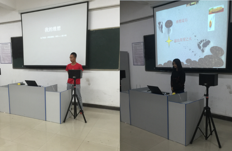 比賽伊始,輔導(dǎo)員何倩老師精彩的演講為此次大賽拉開序幕。參賽選手分別上臺講解自己的作品,圍繞“我的理想”、“我的家鄉(xiāng)”兩個主題,同學(xué)們精彩的演講內(nèi)容、激昂的聲調(diào)、高超的表現(xiàn)技巧、制作精美的PPT博得觀眾陣陣喝彩,時(shí)而莊重典雅、時(shí)而詼諧幽默,把整個比賽氛圍不斷推向高潮。