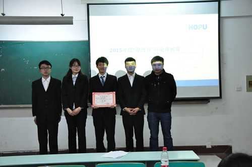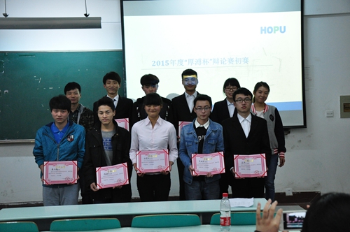 辯論賽分為5場,分別是軟測1班唐蘭組對軟測3班彭湃組、物聯(lián)網(wǎng)4班張應(yīng)吳組對軟測2班李鵬飛組、物聯(lián)網(wǎng)1班劉凱組對物聯(lián)網(wǎng)4班黃天賜組、物聯(lián)網(wǎng)3班理健隆組對物聯(lián)網(wǎng)4班陳燦組和軟測2班王彥組對軟測2班李鵬飛組。經(jīng)過各組的自我介紹之后,各組的辯手便展開他們的論證。雙方辯手針鋒相對,唇槍舌劍,你來我往卻又不失風(fēng)度。雙方一辯具有高度概括性的陳述為每場辯論開篇陳辭;在攻辯環(huán)節(jié)中,雙方二辯精辟的提問以及雙方三辯靈活的思維和精準的總結(jié)概括,不時的贏得場下陣陣掌聲;到了比賽的第三個環(huán)節(jié)自由辯論階段,可以說是每一場辯論的高潮,面對雙方提出的各種問題,對方辯手們均能巧用各種方法,一次一次化險為夷,擊破對手的觀點;最后比賽進入總結(jié)陳詞環(huán)節(jié),雙方四辯各種針對對手邏輯上的漏洞逐一回擊,為贏得比賽做最后努力。正方辯手們精辟的措辭,犀利的言辭,展現(xiàn)出咄咄逼人的氣勢。反方辯手也毫不示弱,他們通過圖片資料的方式多角度地論證了己方觀點。正反雙方辯手清晰的思路和巧妙的陳詞給觀眾留下了深刻印象。最后一場軟測2班王彥和李鵬飛兩組的決賽將辯論賽的氣氛推向了高潮。整場比賽精彩紛呈,現(xiàn)場氣氛活躍,觀眾聽得津津有味,興趣盎然,并且時不時的爆發(fā)出一陣陣熱烈的掌聲。本次大賽最終由軟測2班王彥組獲得了辯論大賽第一名!