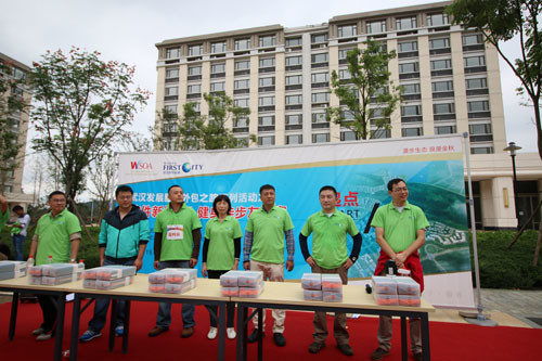 “全體都有,預(yù)備——齊步走!”9月19日上午10時(shí)20分,隨著裁判長的一聲號(hào)令,發(fā)令槍響,2014 WSOA武漢服務(wù)外包發(fā)展之路系列活動(dòng)——漫步生態(tài)·浪漫金秋“軟件新城杯”健身徒步友誼賽盛大召開。