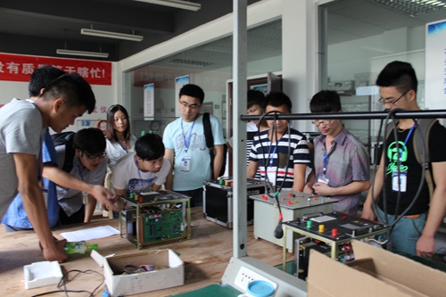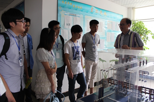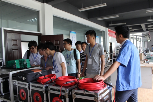 木森電氣項(xiàng)目組的學(xué)生在公司生產(chǎn)車間了解產(chǎn)品情況