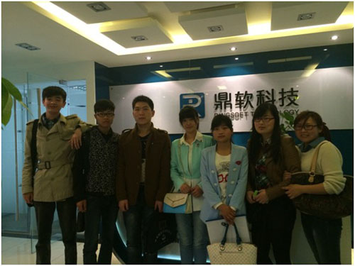 2014年4月11日上午,就業(yè)老師帶5名學(xué)生去北京鼎軟科技有限公司面試,學(xué)生分別是蔡紹文、周威、蘇俊、朱林、張文倩,面試崗位是.net程序員,先筆試后面談,最終結(jié)果3名男生當(dāng)場錄用,后經(jīng)溝通,張文倩、蘇俊、尤靈資也在此公司上班。