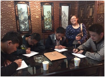 2014年4月10日下午,景寧就業(yè)老師陳慧帶四名學(xué)生去北京美??萍加邢薰久嬖?,四名學(xué)生分別是李永永、葉飛、鄧乾蔚、張博。