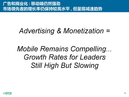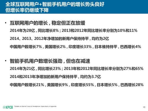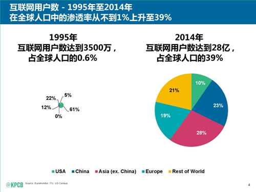 被譽為“互聯(lián)網(wǎng)女皇”的KPCB合伙人瑪麗·米克(Mary Meeker)今日發(fā)布了年度互聯(lián)網(wǎng)報告。這是米克連續(xù)第20年發(fā)布互聯(lián)網(wǎng)報告,報告涵蓋了廣泛的趨勢。以上為新浪科技制作的中文版報告。